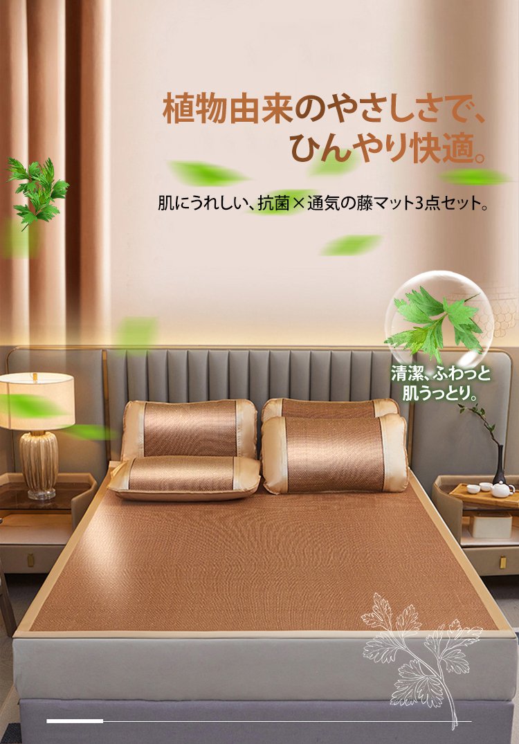 ひんやり爽快ラタン寝具3点セット